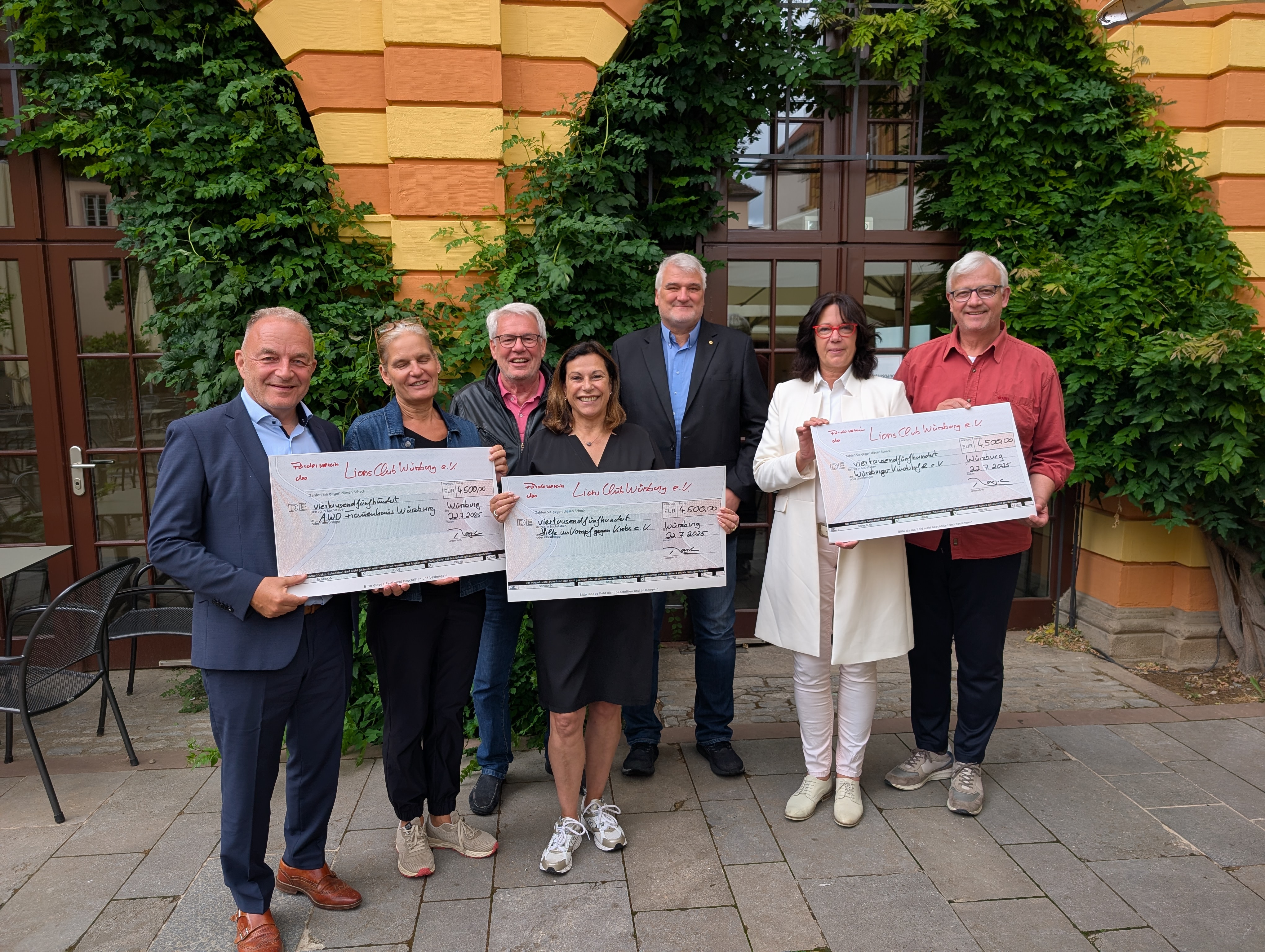 Im Rahmen einer feierlichen Scheckübergabe im Bürgerspital Würzburg hat der Lions Club Würzburg den Erlös seines Benefizkonzertes mit Volker Heißmann und der Thilo Wolf Big Band an drei wichtige soziale Einrichtungen der Region überreicht. Insgesamt konnten durch das Konzert 13.500 € übergeben werden, wobei Volker Heißmann und die Thilo Wolf Big Band auf Teile ihrer Gage verzichteten.